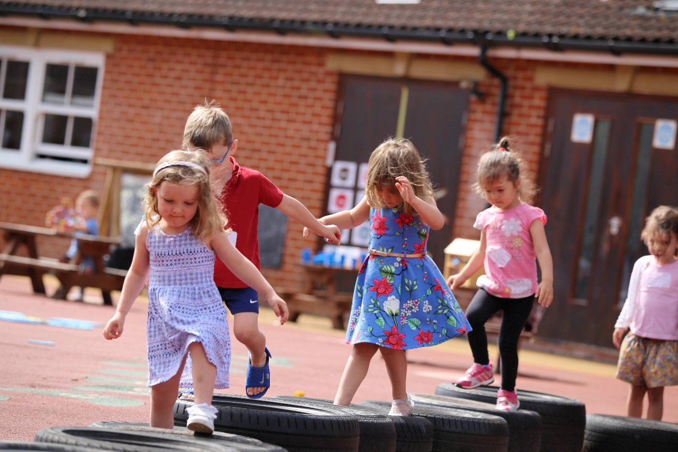 Our nursery has two spacious and well-resourced gardens which enable the children to explore and develop their gross motor skills.